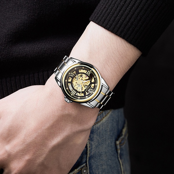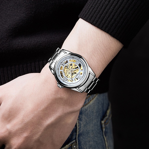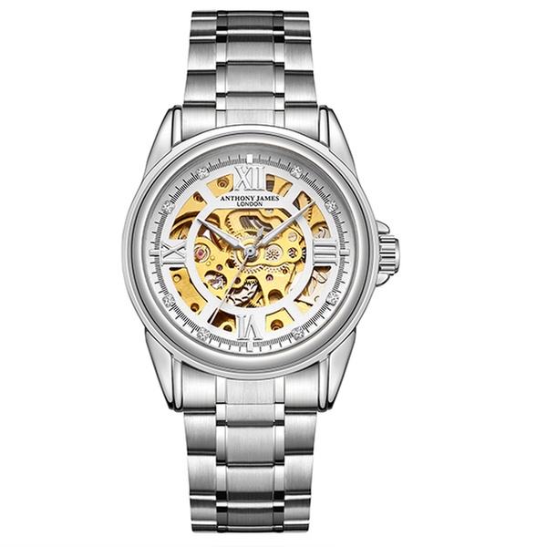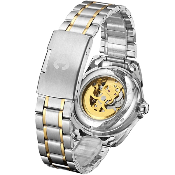 Featuring a jewel automatic movement and a stainless steel skeleton caseback, this elegant watch can be an ideal gift for a loved one