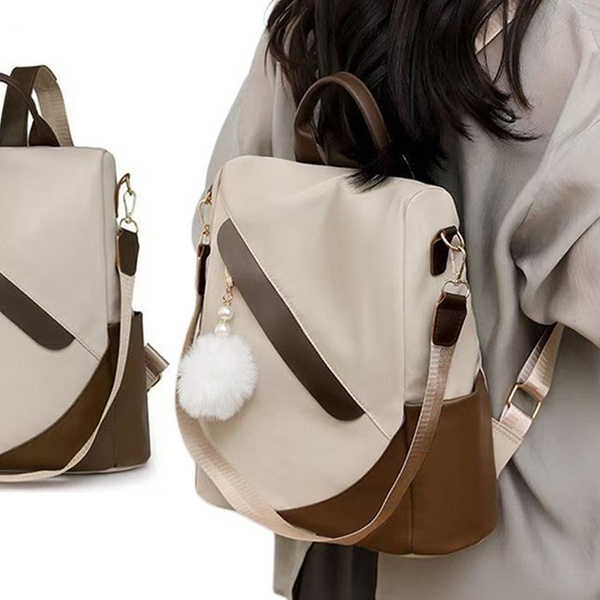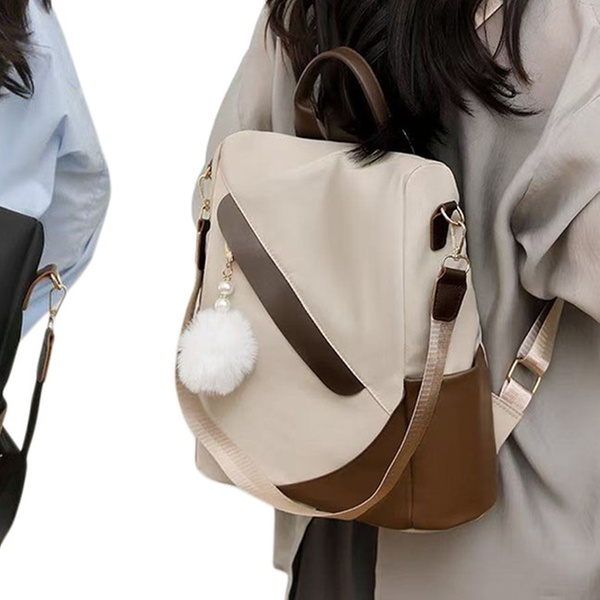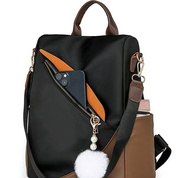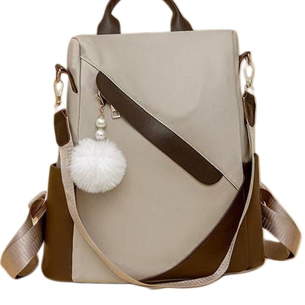 Anti-Theft Backpack, Water-Resistant with Removable Pom Pom Charm