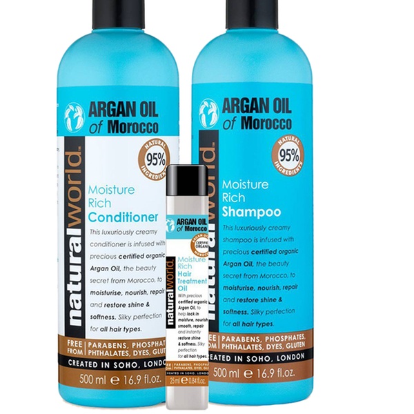 - Each set contains argan oil shampoo 500ml, conditioner 500ml and 25ml oil