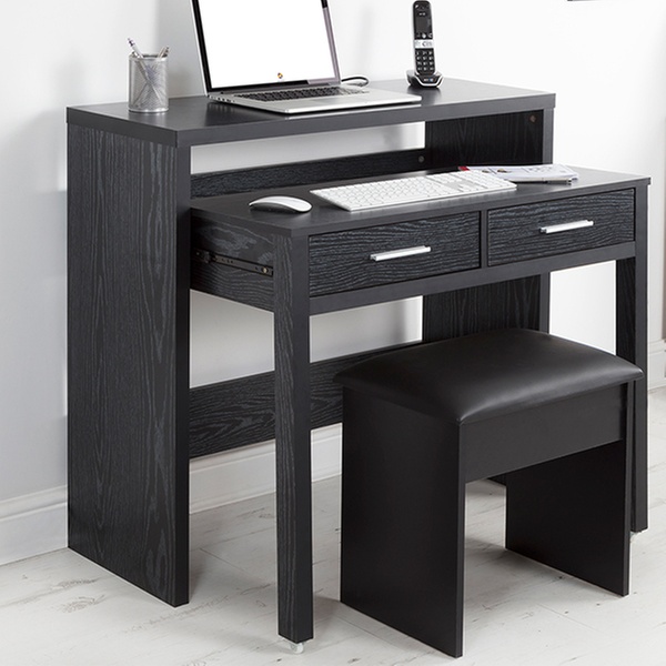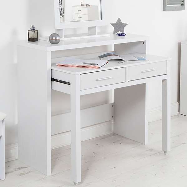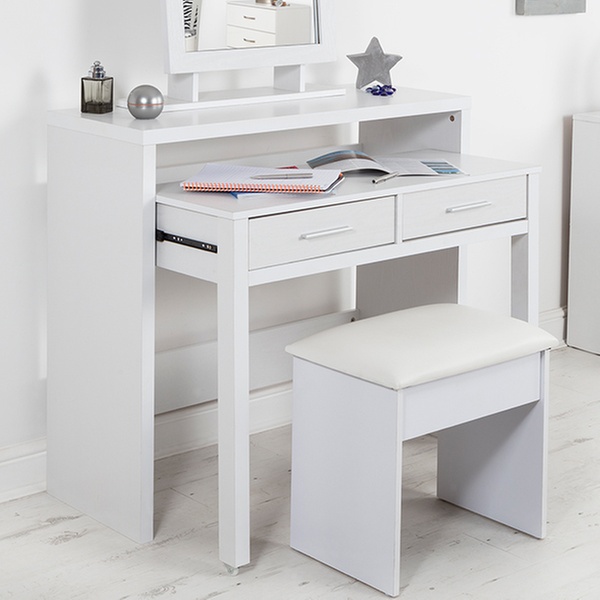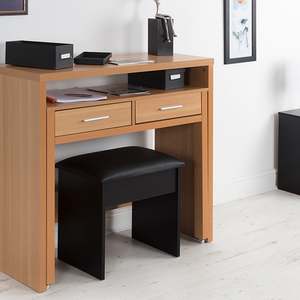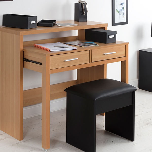 This compact, multipurpose table, manufactured from engineered wood, features a modern design that can match most types of bedroom interiors