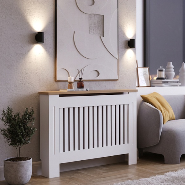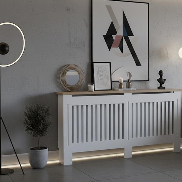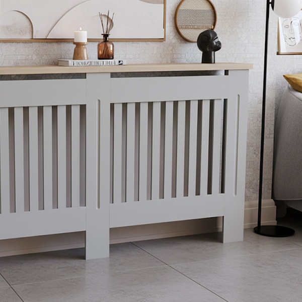 Elevate the home décor with this Arlington radiator cover featuring a simple vertical panel pattern design at the front