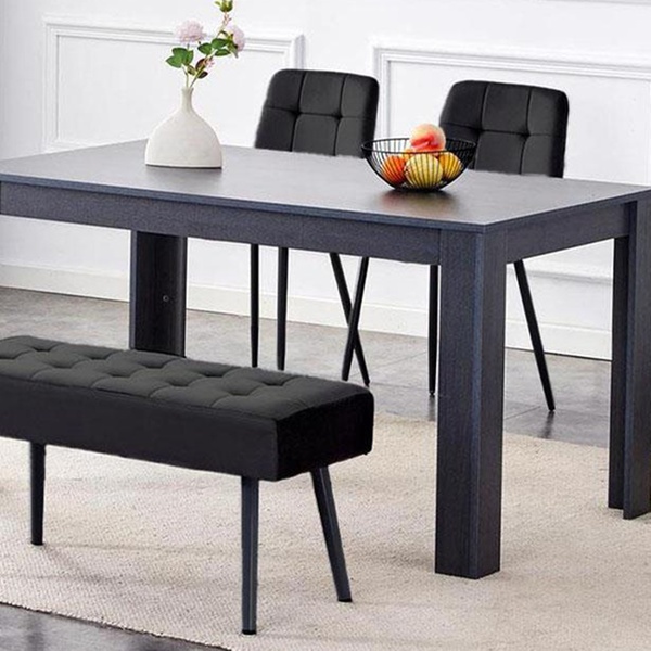 - The dining table is crafted from high-quality MDF and features a durable melamine laminated finish for a long-lasting, resilient surface.