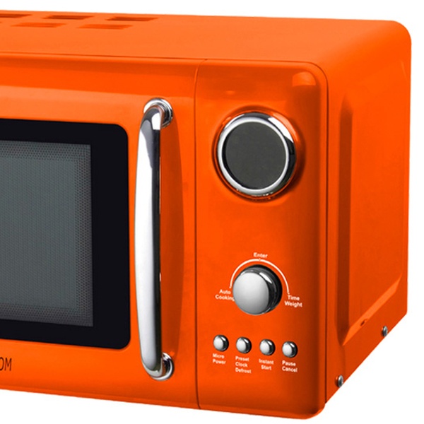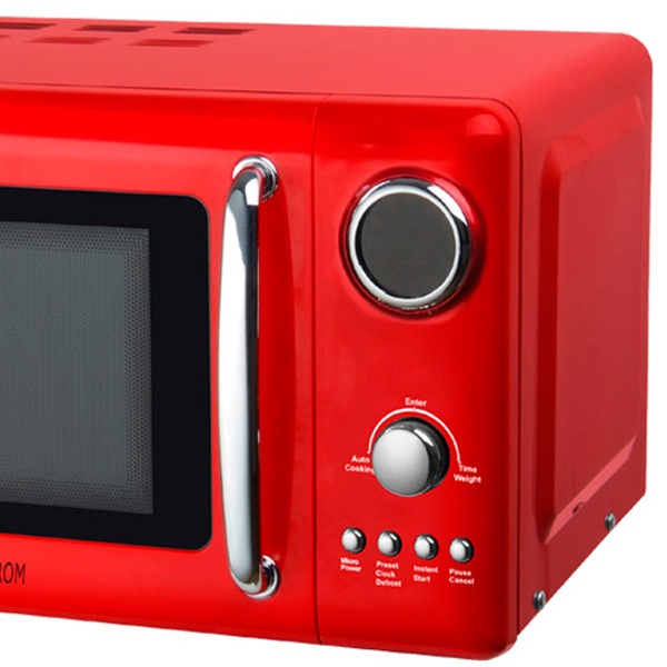 Featuring stylish vintage-inspired design, this microwave comes in three colours to match various interiors