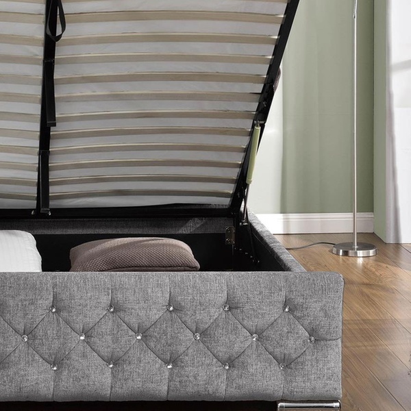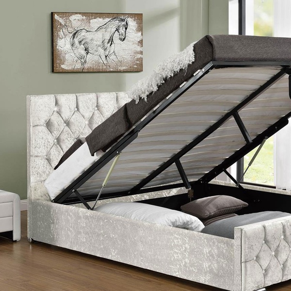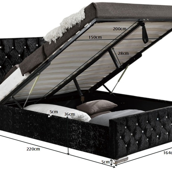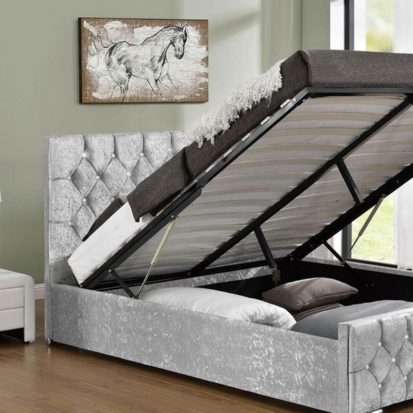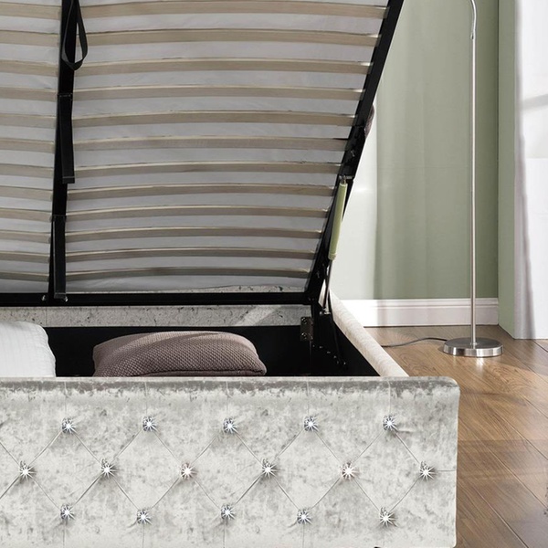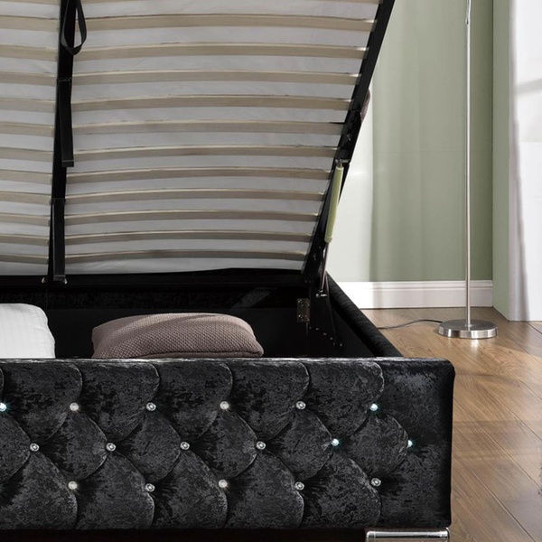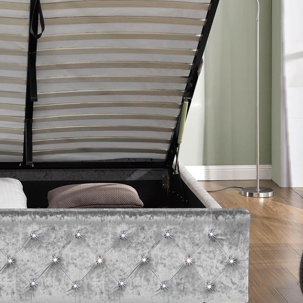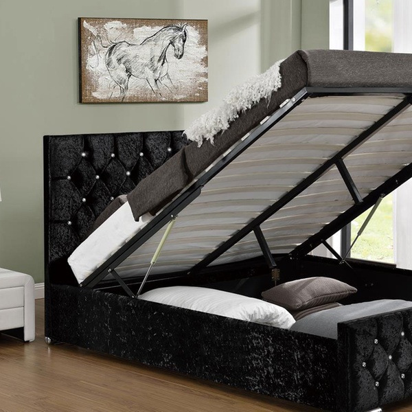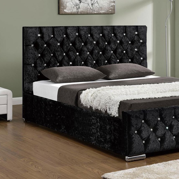 Available in choice of colour and size, this ottoman bed features diamante crystals detail on the headboard and footboard