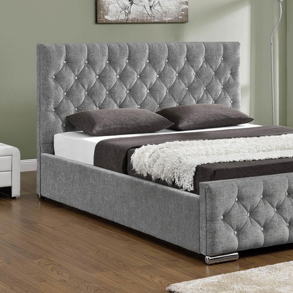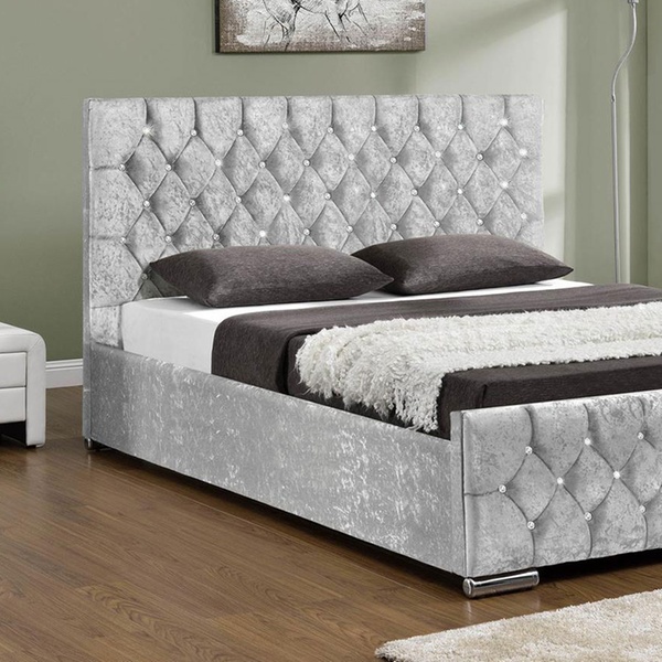 - The quality fabric is detailed with faux diamante crystals on the headboard and footboard