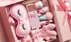 1 x 100mm circle wooden personalized Valentines day magnet/ decoration, 1x personalized wooden bottle opener, mini moisturizer , mini festive hand cream, pink exfoliating gloves, personalized small wooden hair comb, soft pink spa headband, pink silk sleep mask, nose pore strips, pink face cloth, pink heart pen, pink shot glasses, pink hair clip, pink toe spacer, reusable soft cosmetic pad, socks, foot callus remover, 2 x mini make up sponges, mini wooden face mask scooper, mini nail file, pink compact pocket mirror, collagen lip mask, eucalyptus nasal strips, lavender night patches, positive affirmation daily reminder cards and somatic therapy cards.