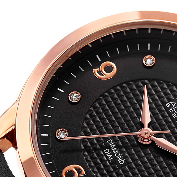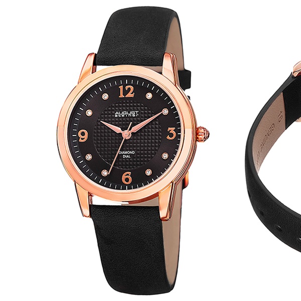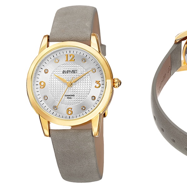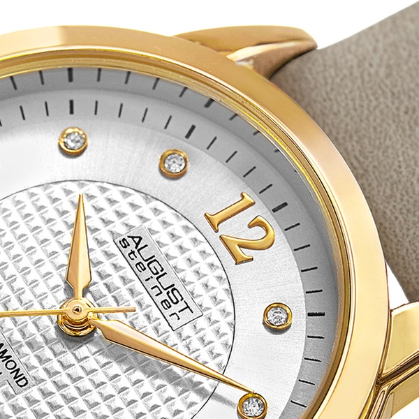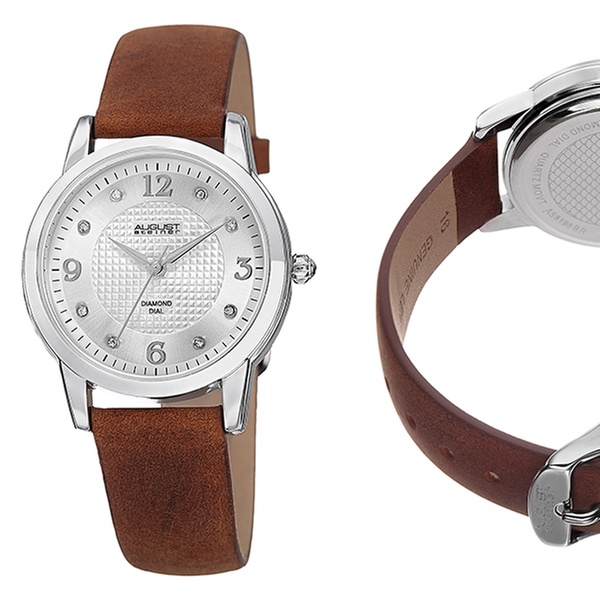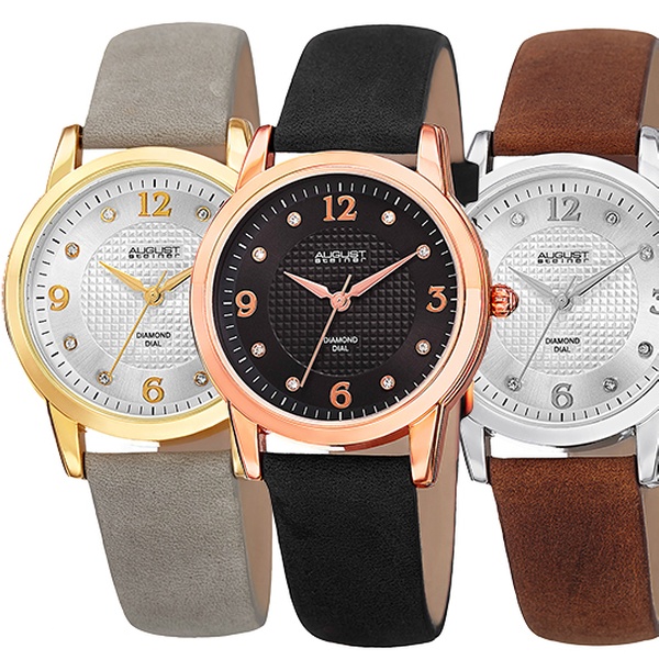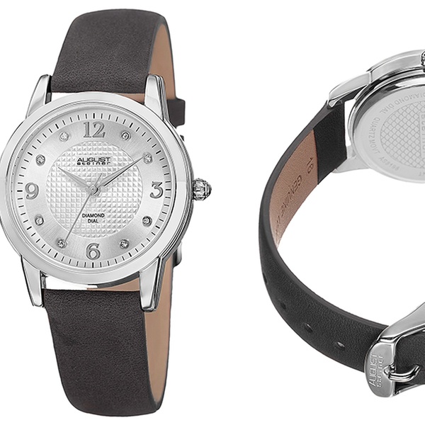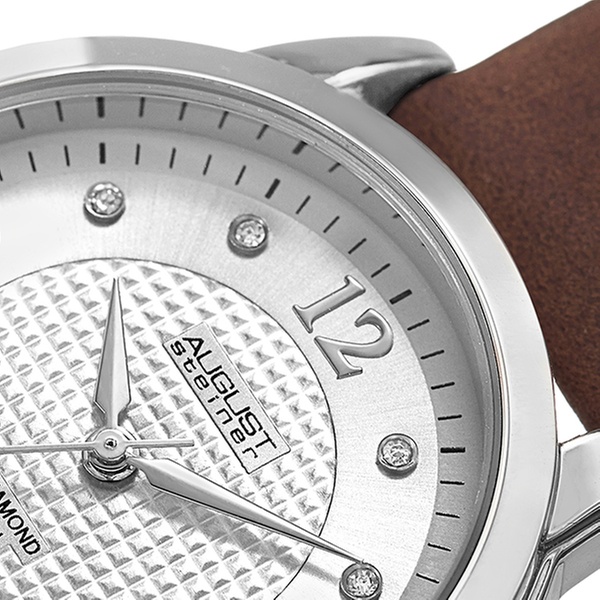 This watch by August Steiner boasts a classic three-hand movement in a polished, finish alloy case with diamonds as hour markers
