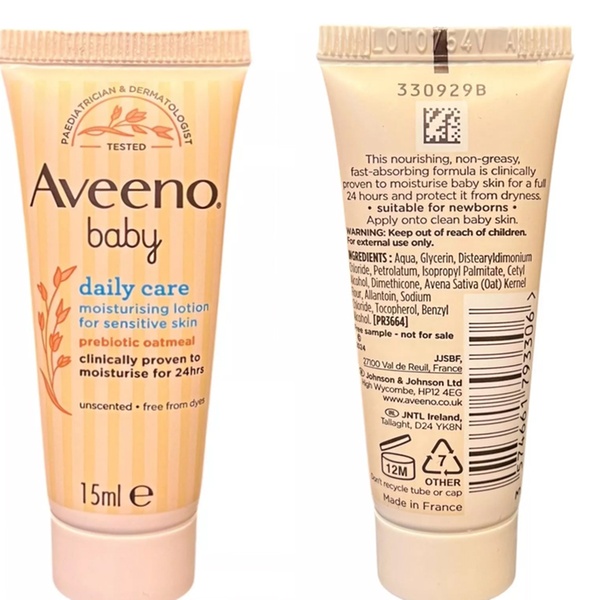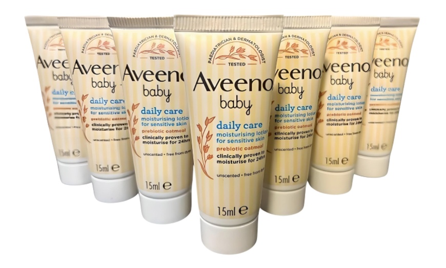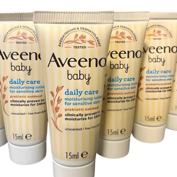 Today's Groupon offers 30 or 50 Aveeno Baby Daily Care Moisturising Lotions for Sensitive Skin 15ml, distributed by Global Fulfillment Ltd.