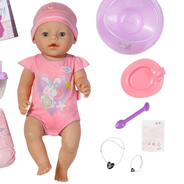 Make the mother-child role play even more exciting and realistic with this doll which can drink from a bottle and eat porridge