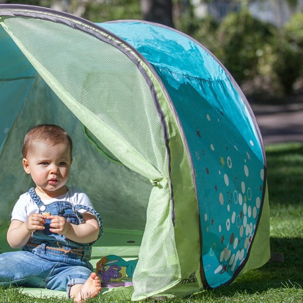 Designed to protect babies from harmful UVA and UVB rays, sand, wind and mosquitos, this tent folds and unfolds in just three seconds