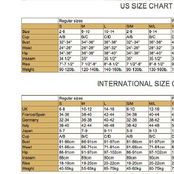 | EU size | UK size | Cup | Bust | Waist | Hip | Inseam |