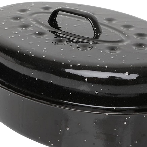 - Enamel-coated carbon steel roaster