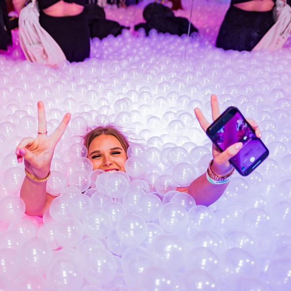 Jump into fun at a glowing ball pit & sip cocktails and enjoy themed events in a vibrant adult playground!
