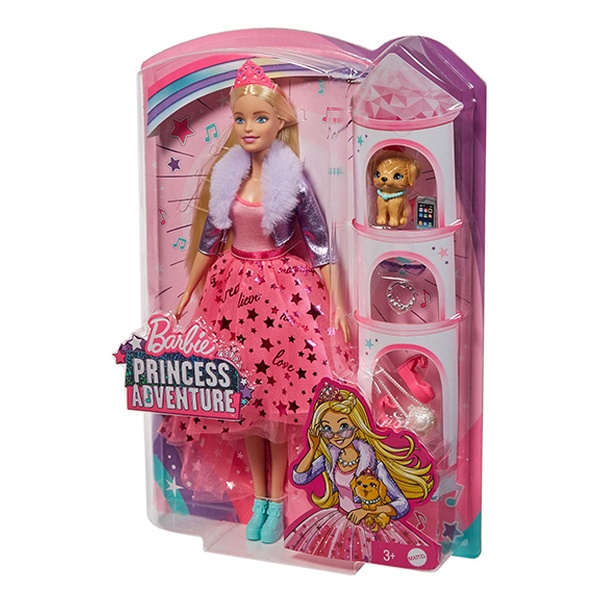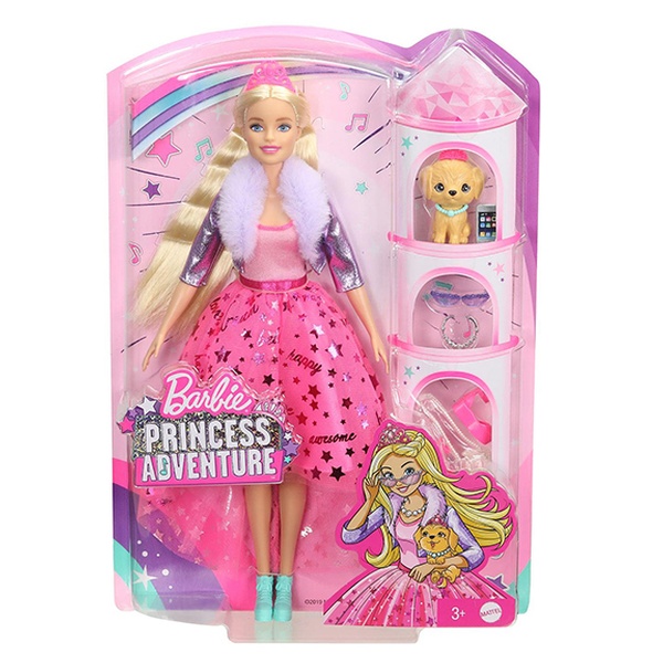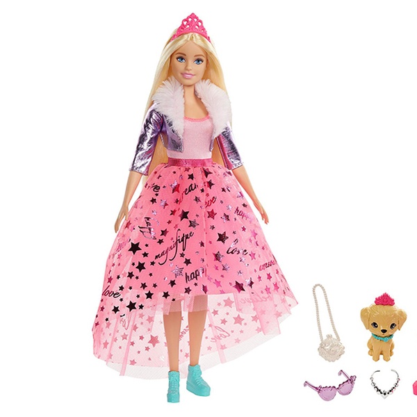 - Barbie princess doll comes with a royal puppy friend with her own tiara and collar, keeping with the fantasy look