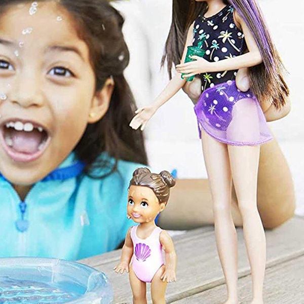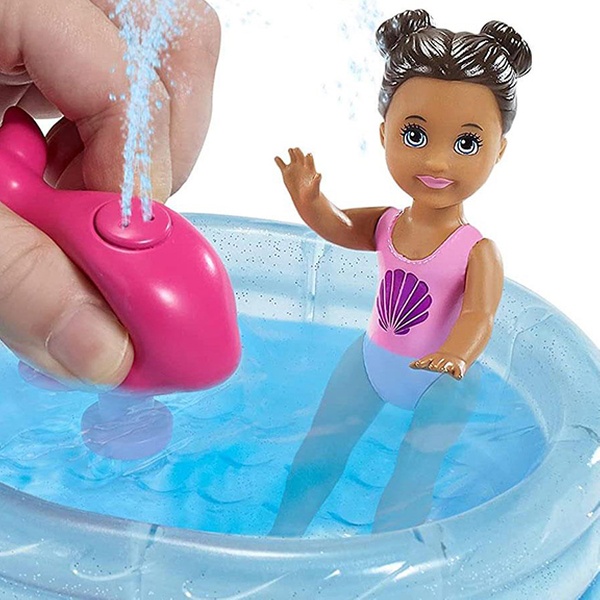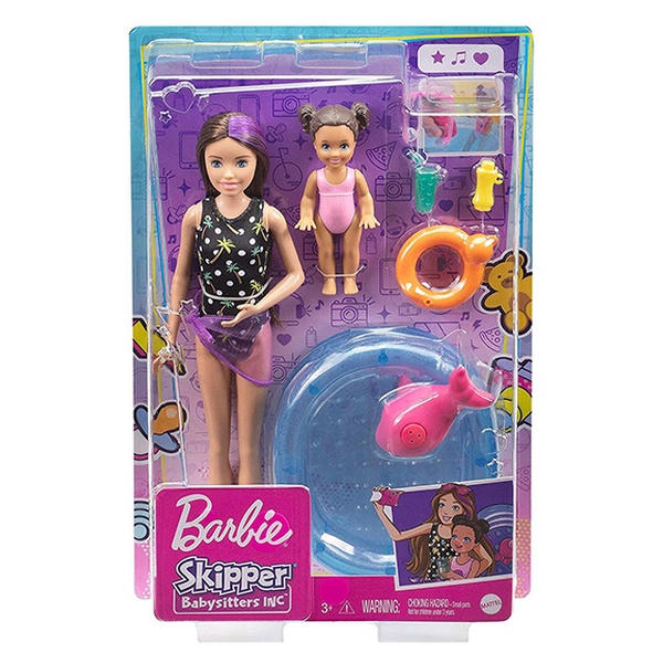 - Inspires kids’ imaginations with a Skipper babysitter doll, a small doll, a pool, and more
