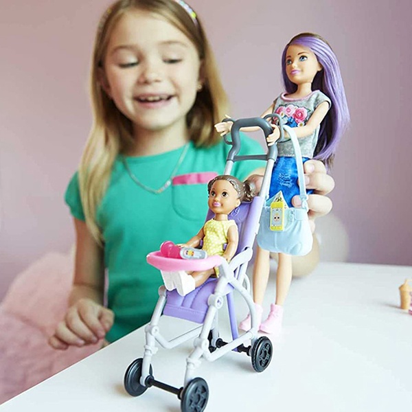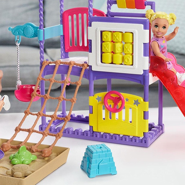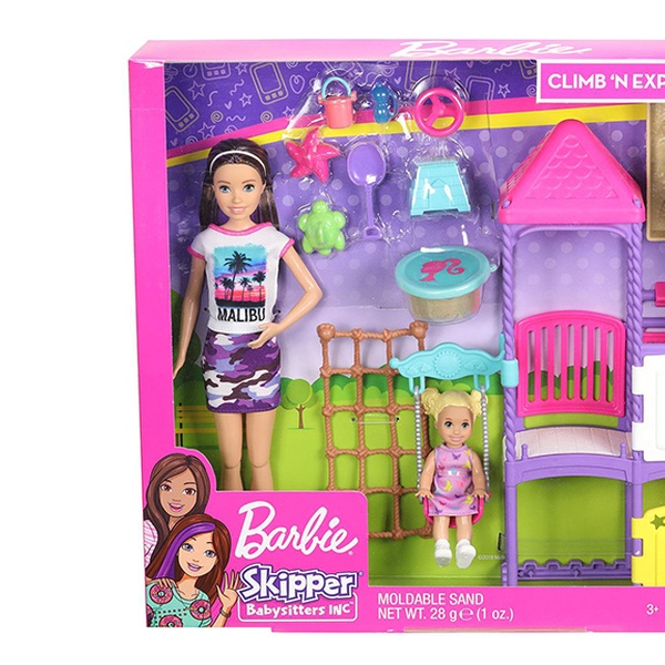 - Kids can play out babysitting moments with this playground-themed Barbie Skipper babysitter doll and playset combo, which comes with two dolls