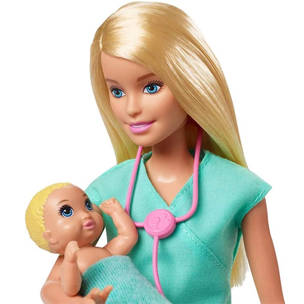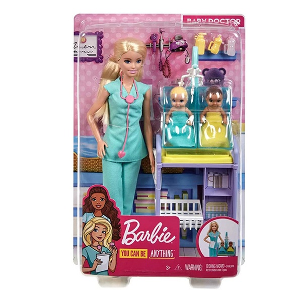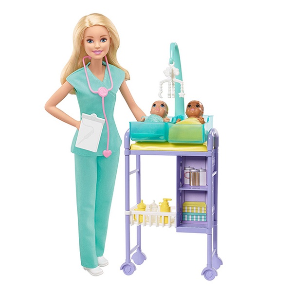 - Includes a baby doctor environment with a Barbie Baby Doctor doll, two adorable baby doll patients, and toy play pieces for examinations and caretaking