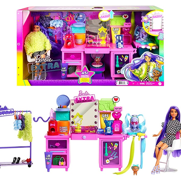 Barbie Extra Doll with LongPurple Hair & Vanity Playset