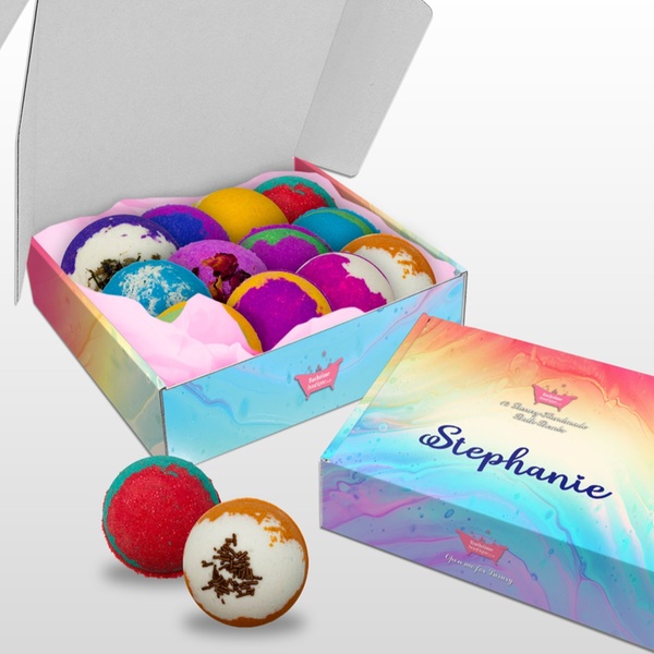 - What’s included: 76% discount voucher against a personalised 12 handmade bath bombs gift box