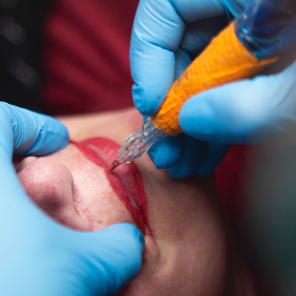 - Semi-permanent lip Blush Tattoo session Including a Touch-Up