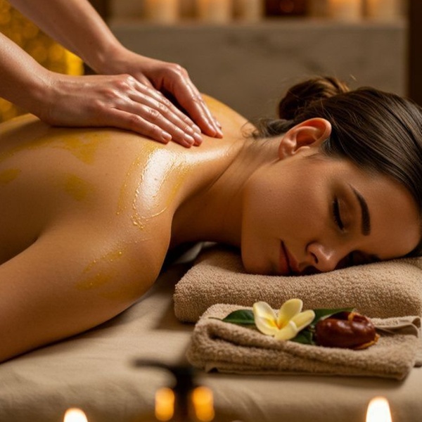 • Option 1: Full Body Massage (55 min) – deep relaxation and tension relief