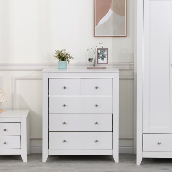 - Five-drawer chest: 79cm (L) x 40cm (W) x 95cm (H)