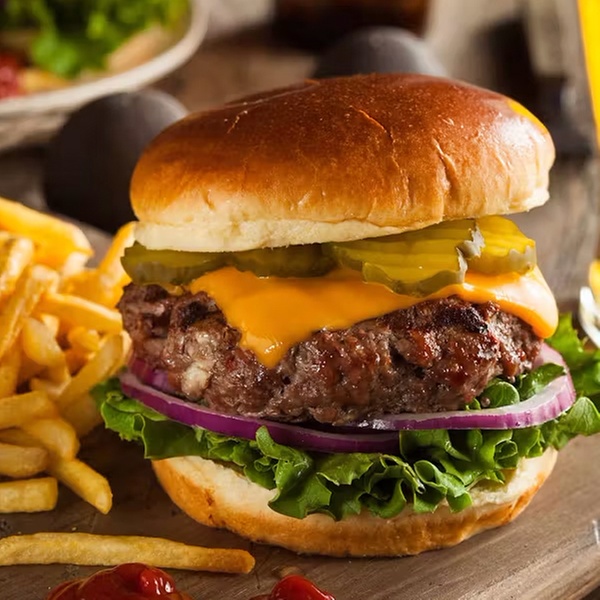 Topped With Double Cheese, Fried Onions, Gherkins Relish & Fries