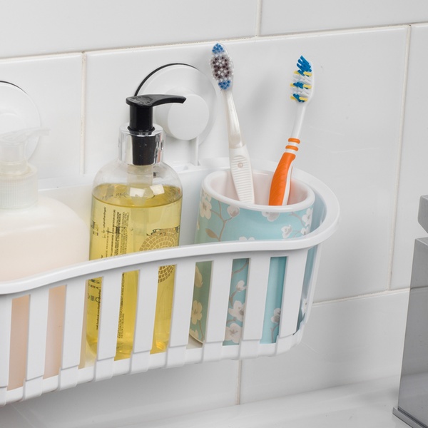 - Simply attach the suction caddy to any smooth bathroom surface and the strong suction cups will provide a secure hold