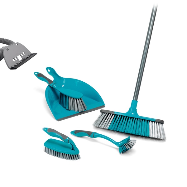 - Scrubbing brush ideal for harder cleaning, such as mud on the wooden kitchen floor