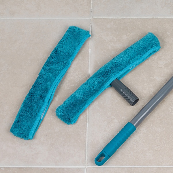 Achieve a streak-free clean with ease using this window cleaning set, which includes a handle, two wipers and two cloths