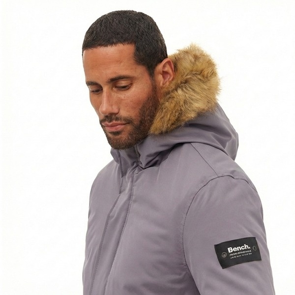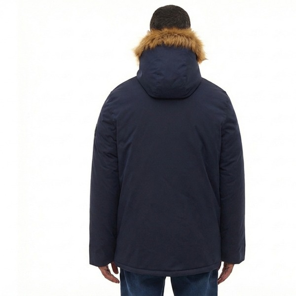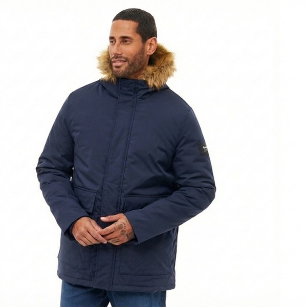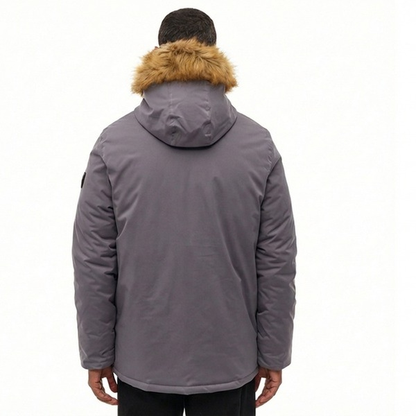 A warm, water-repellent men’s padded parka with a faux fur hood, designed for everyday comfort, protection and cold-weather style
