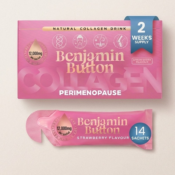 Today's Groupon offers Benjamin Button Peri and Meno Marine Collagen 12000mg Sachets, distributed by Benjamin Button Ltd.