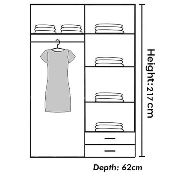 - Dimensions: width: 150 cm, depth: 62 cm, height: 217 cm