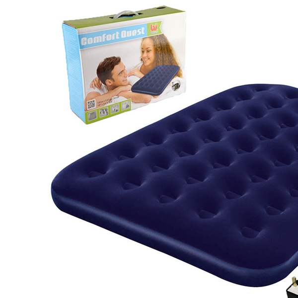 This vinyl Bestway inflatable air bed can be inflated within 160 seconds; ideal for family trips or people on the go