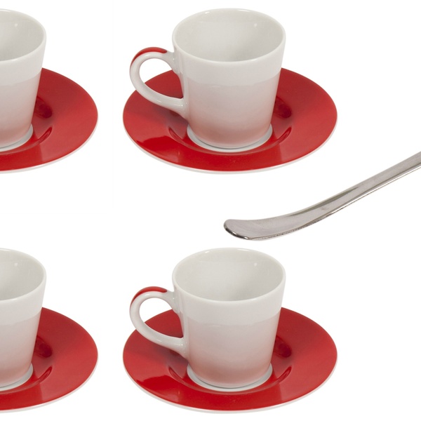 Four Espresso Cups, Four Saucers and Six Stirrers