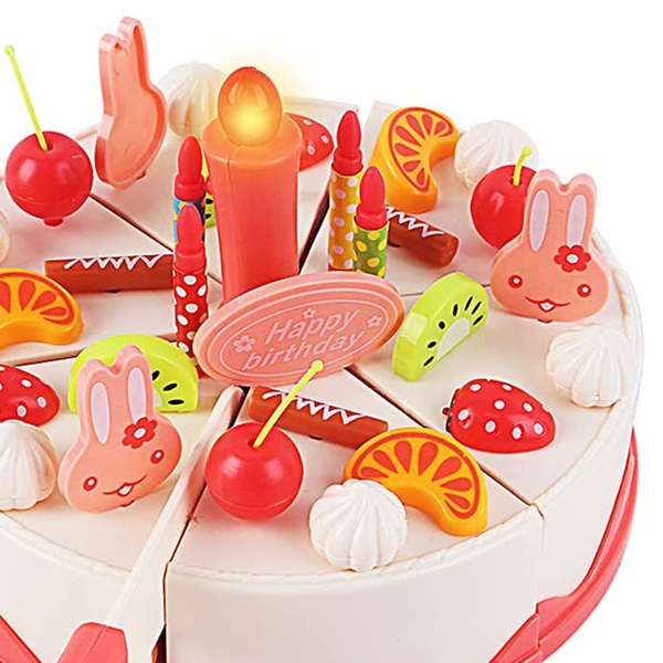 - 1x birthday cake (6 play serving slices); 1x happy birthday sign.