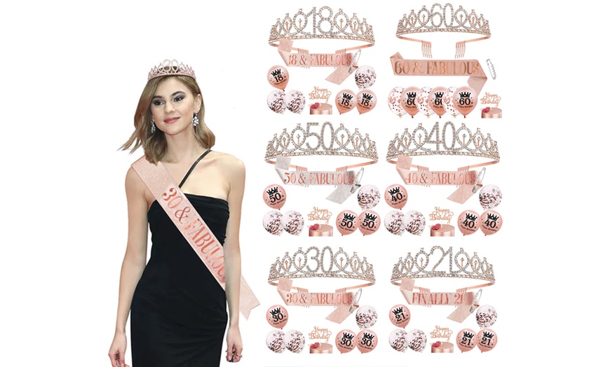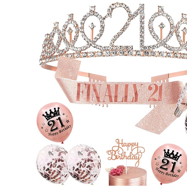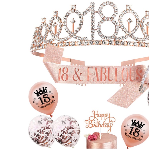 - Includes 1 birthday sash, 1 number crown headband, 6 balloons, 1 pearl pin, and 1 cake topper.