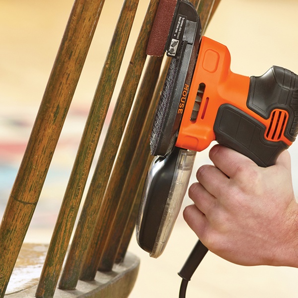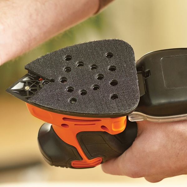 Capable of removing paint and smoothing surfaces, this sander is shaped to allow access to corners and tight places