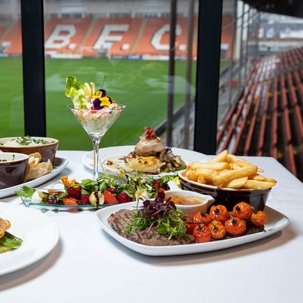 Perched above the iconic Bloomfield Road pitch, the Corner Flag Restaurant offers a truly unforgettable experience in the heart of Blackpool FC. With its sleek, contemporary setting and sweeping stadium views, it’s the perfect spot for everything from indulgent afternoon teas to relaxed meals with a unique twist. Loved for its warm hospitality, generous portions, and exceptional value, it’s where great food meets unbeatable atmosphere — whether you're a football fan or simply looking for something special.