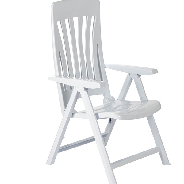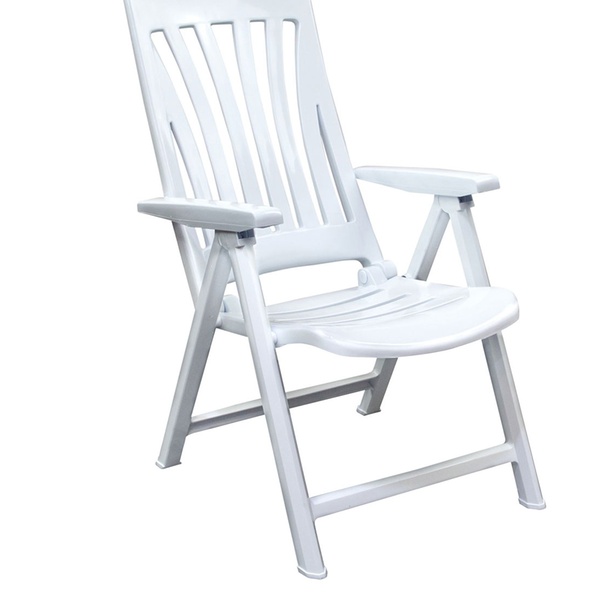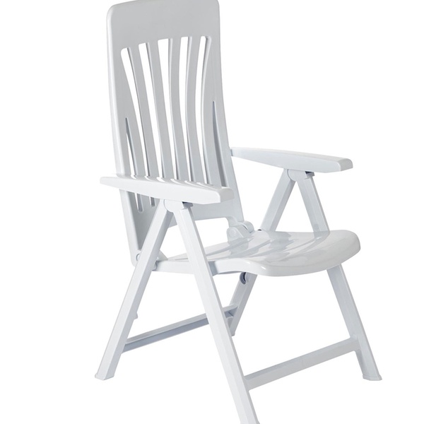 Designed and manufactured in Catalonia, Spain, the Blanes range of outdoor plastic armchairs offers five reclining positions for optimum comfort and folds flat for easy, space-saving storage