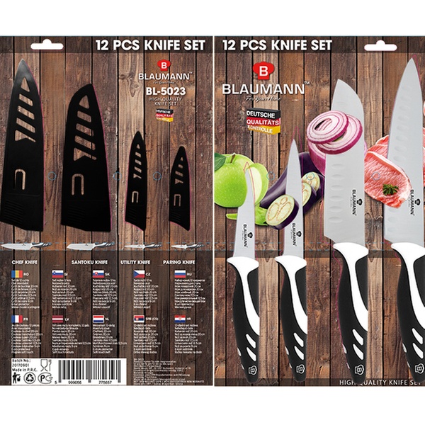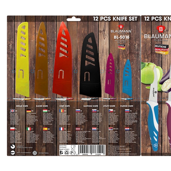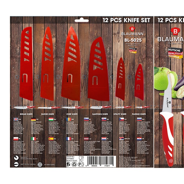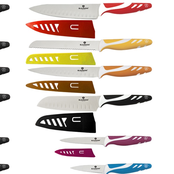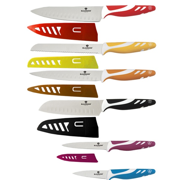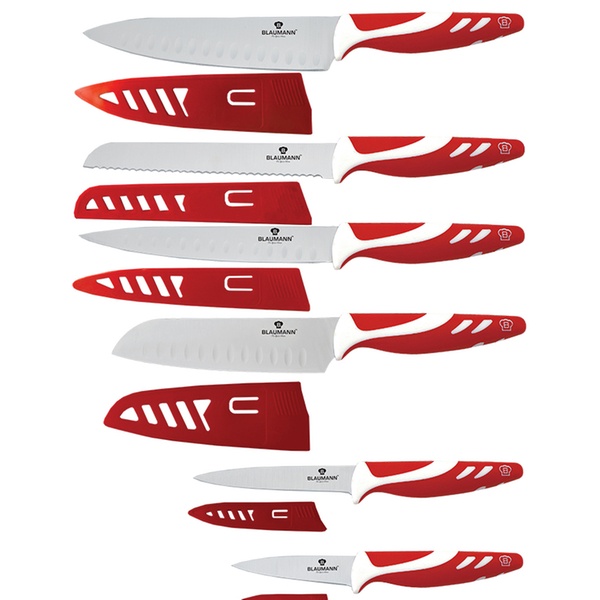 Featuring stainless steel blades and soft-touch non-slip handles, this set includes six knives with sheaths