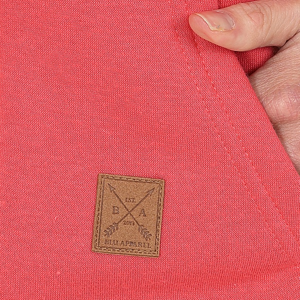 - Brand detail: Completed with the Blu Apparel leather tag