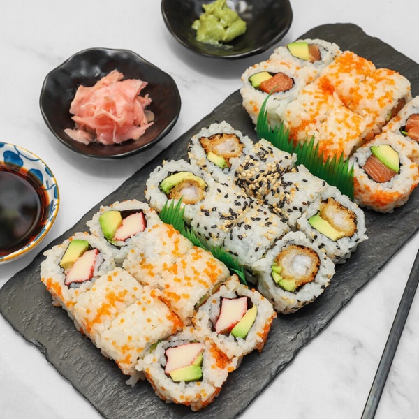 - GOLD COMBO-For Four: 2x Tokio Platter for Two (64pcs total), 4x spicy Edamames, 4x Bubble Teas (Fruit Teas)