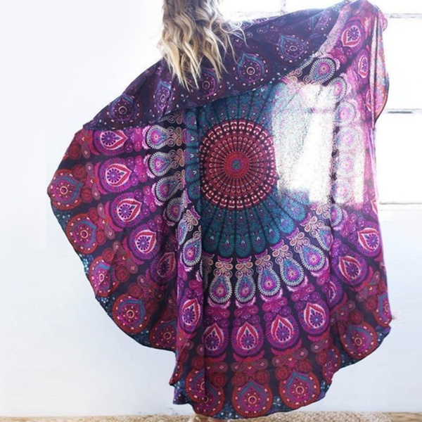 Featuring an eye-catching bohemian mandala pattern, this versatile towel can be used as a beach mat, furniture cover or cape