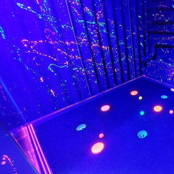 Looking for something different to do this weekend? How about playing some glow-in-the-dark mini-golf? It’s a blast whether you're going solo or bringing the whole crew along. There's nothing quite like the vibrant colors lighting up each hole as you play through the course. Plus, you can unwind afterward with tasty pizza and refreshing drinks!