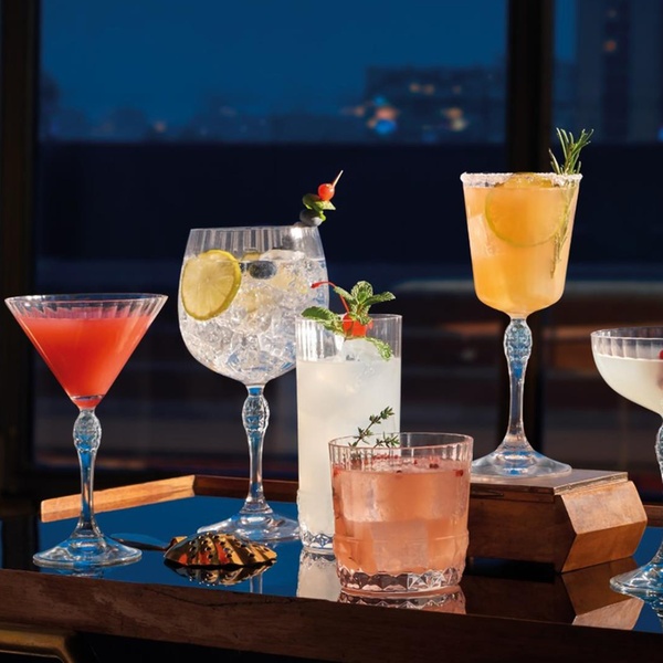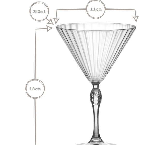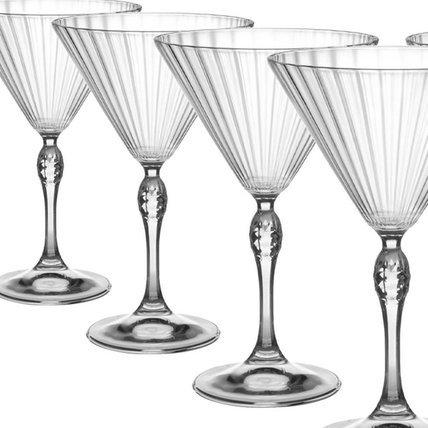 Featuring an Art Deco inspired design with delicate ridges and intricate reflections, these durable and crystal clear glasses are dishwasher safe and meet the standards of mixology professionals