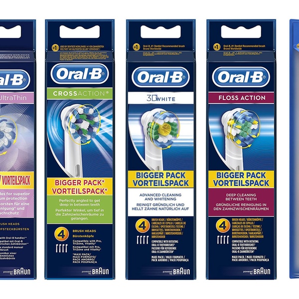 The shape of the Oral-B toothbrush heads features specifically engineered bristles that are designed for complete tooth coverage