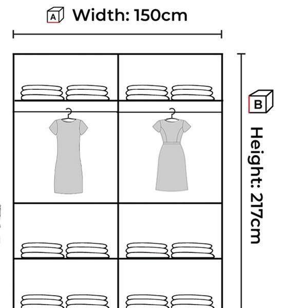 - 150m wardrobe: 150cm (W) x 217cm (H) x 62cm (D)