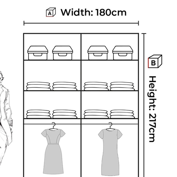 - 203cmwardrobee: 203cm (W) x 217cm (H) x 62cm (D)