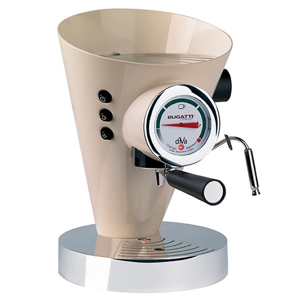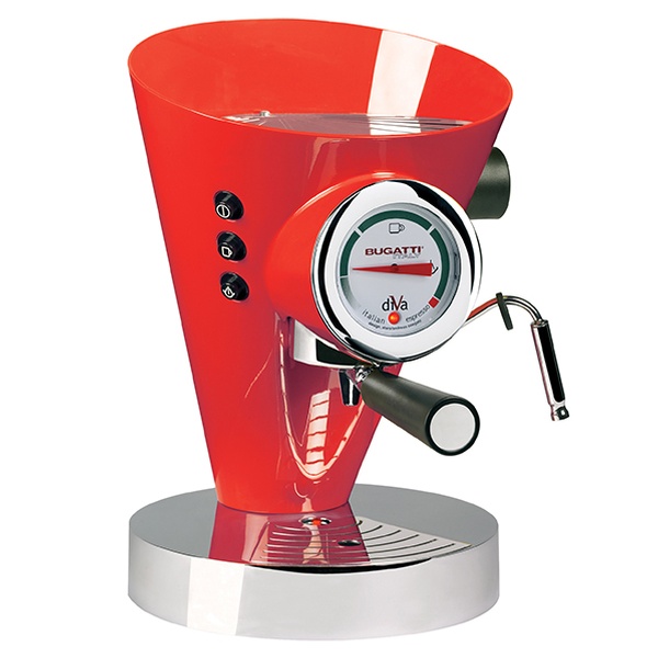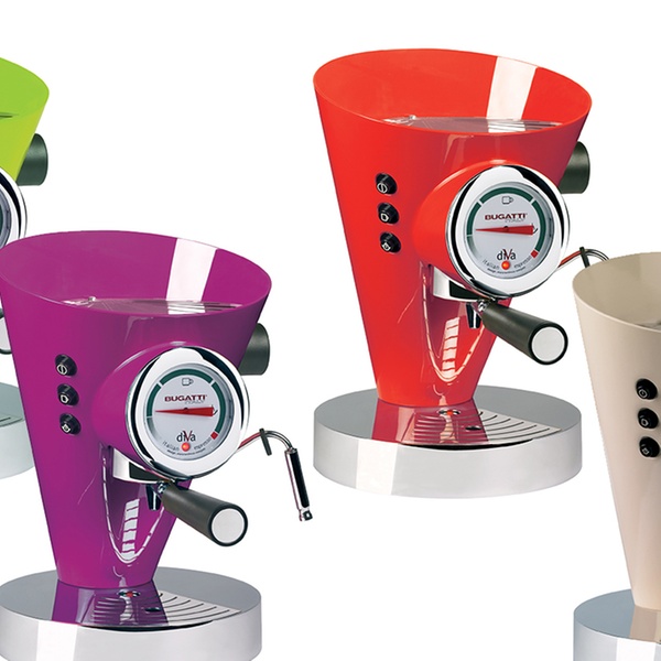 Coffee connoisseurs can enjoy a fresh morning brew with this compact espresso machine by Bugatti; available in a choice of colours